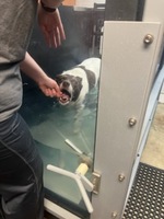 Sawyer has hip dysplasia and arthritis, now that he is a senior dog. He needs some rehabilitation since his joints are getting stiffer and his legs are getting weaker. He was losing some muscle mass in his legs, especially after surgery to get a tumor removed on his leg. He started to limp a little bit here and there after ongoing activity. Sawyer needs rehabilitation to keep him comfortable and living life to the fullest at his age! The vets at Colonial Manor referred me to VSMRG and it was a no brainer! Having them both in the same building with similar people in the area has been amazing. Sawyer was already used to Colonial Manor, so he did not seem scared doing something new within the same building. It has been very helpful for both parties to be in the same building too because the vets and VSMRHG staff can communicate about Sawyer’s health.