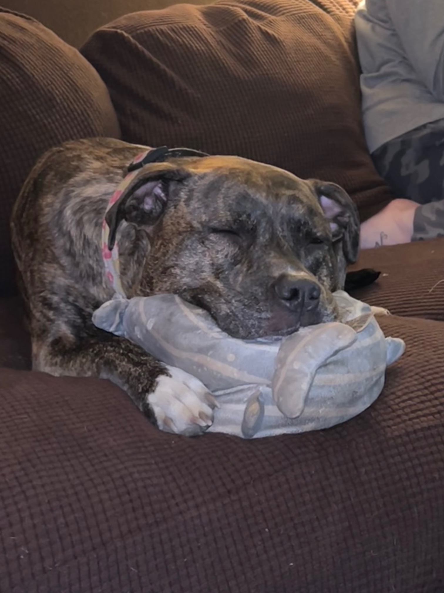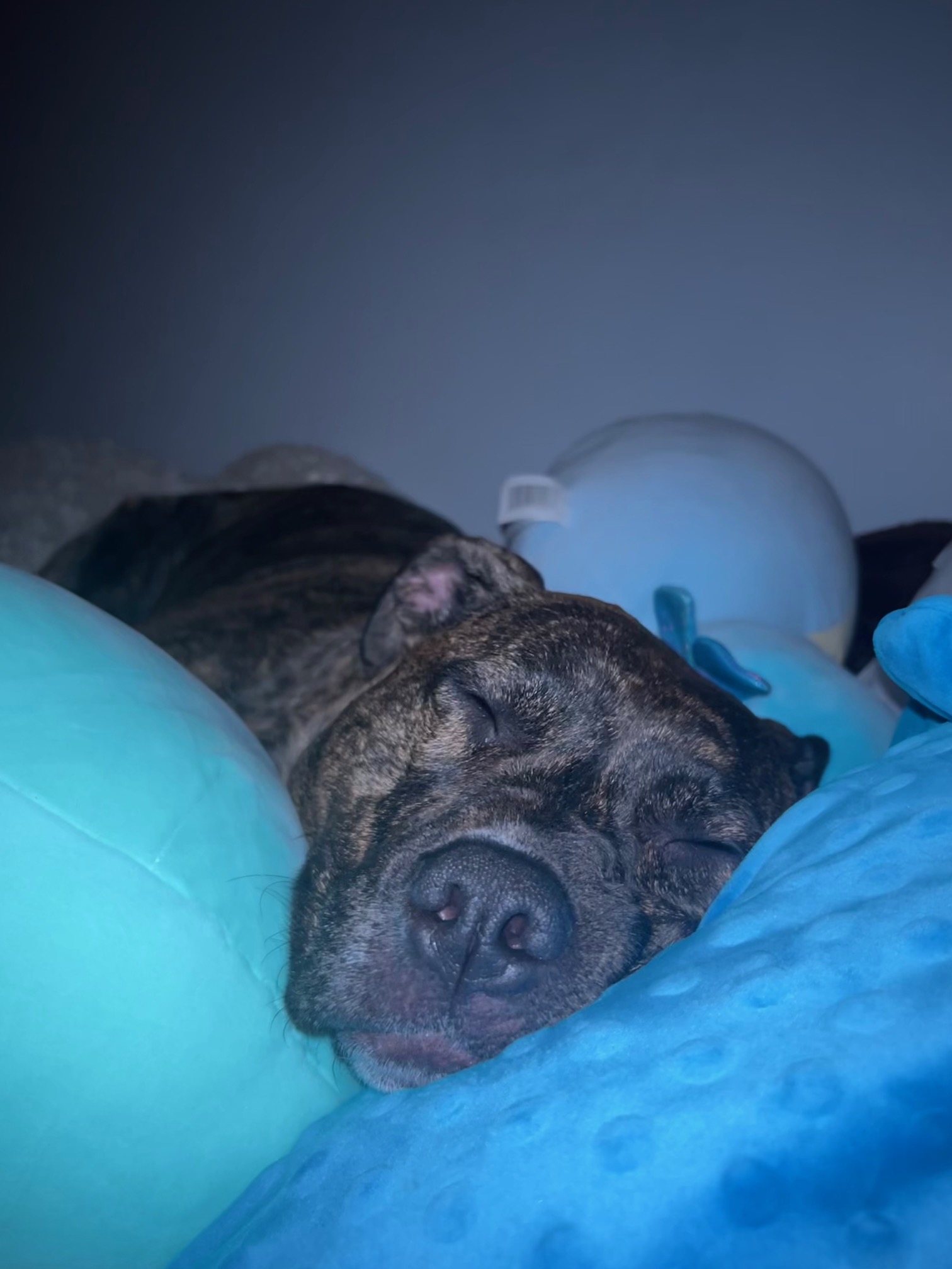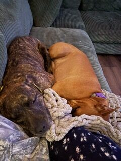 I got Piper in 2019 when she was 6 months old. I saw she was being neglected and abused and I offered/begged for the guy to let me take her. After going back and forth for a while, he finally agreed. I immediately took her to the vet, where they explained that she had a broken knee that was neglected and healed improperly. She got PRP shots which were amazing and helped for quite a while.