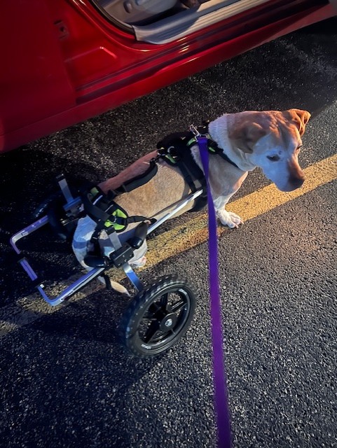 Although she did make improvement, it was determined that the best point of treatment would be to manage her pain. She’s been set up with her own wheels and special harness to help her get around better. It’s not easy to find people that put in as much effort and care into your dog as you do, but that is what VSMR does. They treat every patient as if they were their own animals. Everyone loves Dutchess and cares so much for her. That alone is worth everything. I’m grateful to the entire staff at VSMR, especially Kat and Dr. Brittany.
