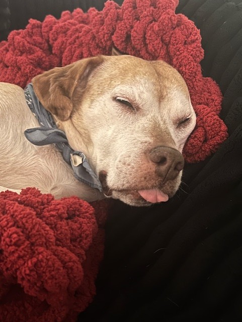 Dutchess loves car rides; she’s a sucker for a tasty treat and a good tennis ball. She also loves sleeping in and borrowing under blankets. Another one of her favorite things to do was go to “work” where she would lay in her bed and let every visitor rub her belly and give her a treat. In between visitors, she’d catch up on her beauty rest and snore louder than a grown man!